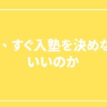 なぜ、すぐ入塾を決めなくていいのか