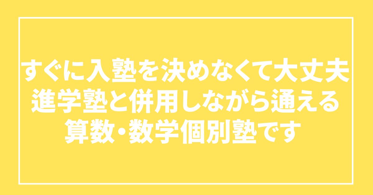 すぐに入塾を決めなくて大丈夫です― 進学塾と併用しながら通える算数・数学個別塾です ―