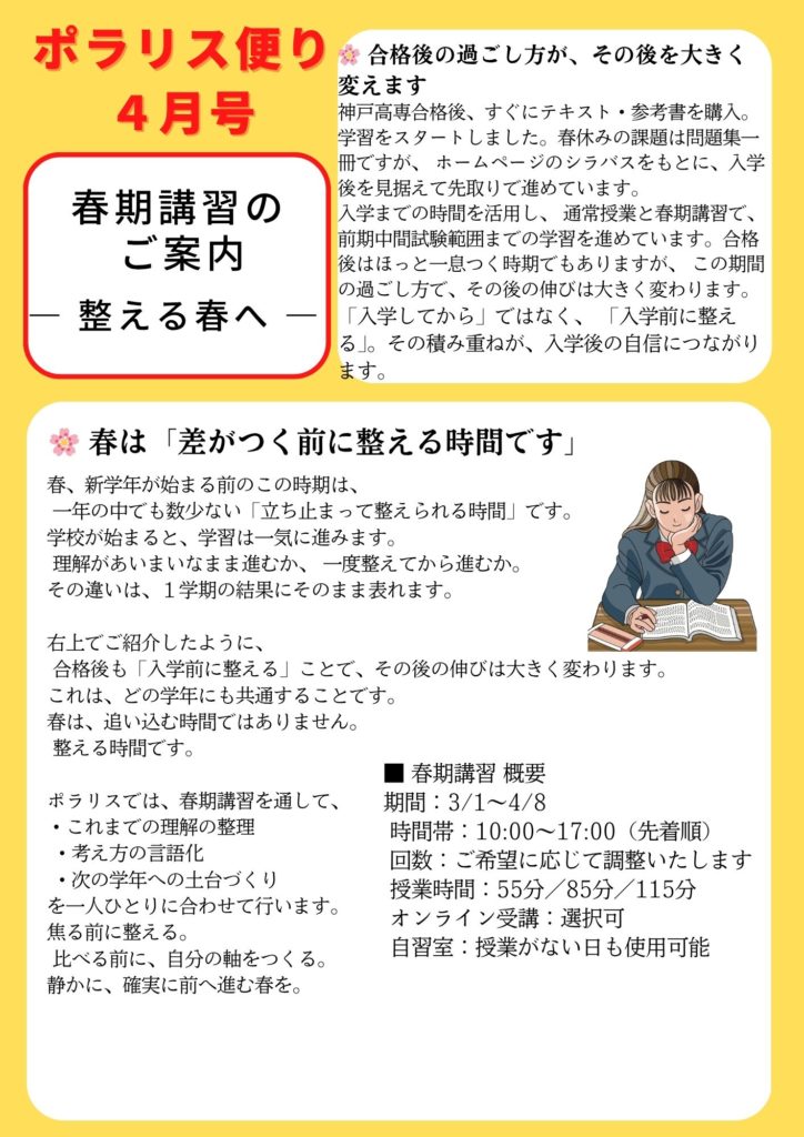 ポラリス便り ポラリス便り4月号 inoue 2026年3月22日 Follow me! お気軽にお問い合わせください。079-222-1315受付時間 9:00-21:00 電話メール FacebookXBlueskyHatenaCopy 算数 数学 塾 個別指導 小学生 中学生 受験 姫路 中学入試 ポラリスへのお問い合わせは お気軽にお問い合わせください。079-222-1315受付時間 9:00-21:00 電話 メール お気軽にお問い合わせください。079-222-1315受付時間 9:00-21:00 電話メール FacebookXBlueskyHatenaCopy
