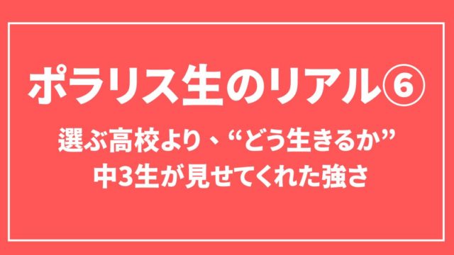 ポラリス生のリアルvol.6 選ぶ高校より、“どう生きるか”。中3生が見せてくれた強さ